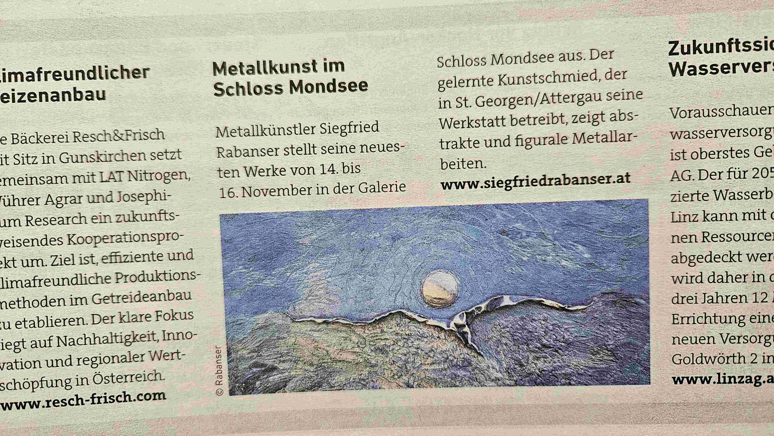 Unter dem Titel „Ausdruckstarke Unikate“ präsentiert Siegfried Rabanser seine neuesten Werke in der Galerie Schloss Mondsee.